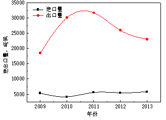 据中国海关统计,2013年中国钨品出口18160吨(钨金属量,不含硬质合金,下同),较2012年减少2976吨,减幅为14.1%。进口量5670吨,较2012年增加349吨,增幅6.6%。净出口量为12490吨,较2012年减少3325吨。2011-2013年中国钨品进出口量如表10-5所示[2]和不同年份中国钨产品进出口量情况见图10-4。